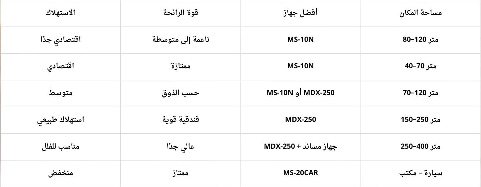 اختيار الجهاز المناسب لمساحة غرفتك = رائحة أقوى + ثبات أطول + توفير أكبر